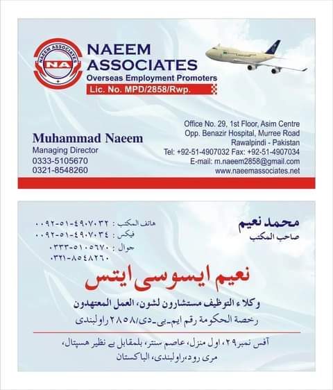 Naeem Associates Overseas Employment Promoters is a premier manpower recruitment agency based in Pakistan, dedicated to connecting top-tier talent with career opportunities across Saudi Arabia, UAE, Oman, Qatar, and other global destinations. Licensed and approved by the Government of Pakistan having Lic # MPD/2858/2010, we pride ourselves on delivering reliable, transparent, and customer-focused recruitment services that meet the unique needs of both our clients and candidates